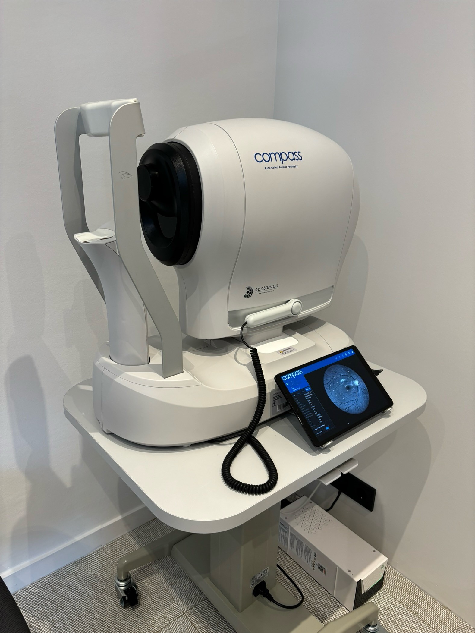 Είναι το μόνο ιατρείο στην Ελλάδα που παρέχει την αυτόματη περιμετρία (Οπτικά Πεδία) iCare Compass ®. Ο συγκεκριμένος τύπος περιμετρίας βελτιώνει την αξιοπιστία των οπτικών πεδίων λόγω της τεχνολογίας του «Active Retinal Tracking» που αντισταθμίζει τις κινήσεις των ματιών και είναι ευαίσθητος στην ανίχνευση της γλαυκωματικής νόσου. Διαθέτει επίσης την τεχνολογία «Truecolor Confocal Imaging» για υψηλής ευκρίνειας έγχρωμες φωτογραφίες βυθού.